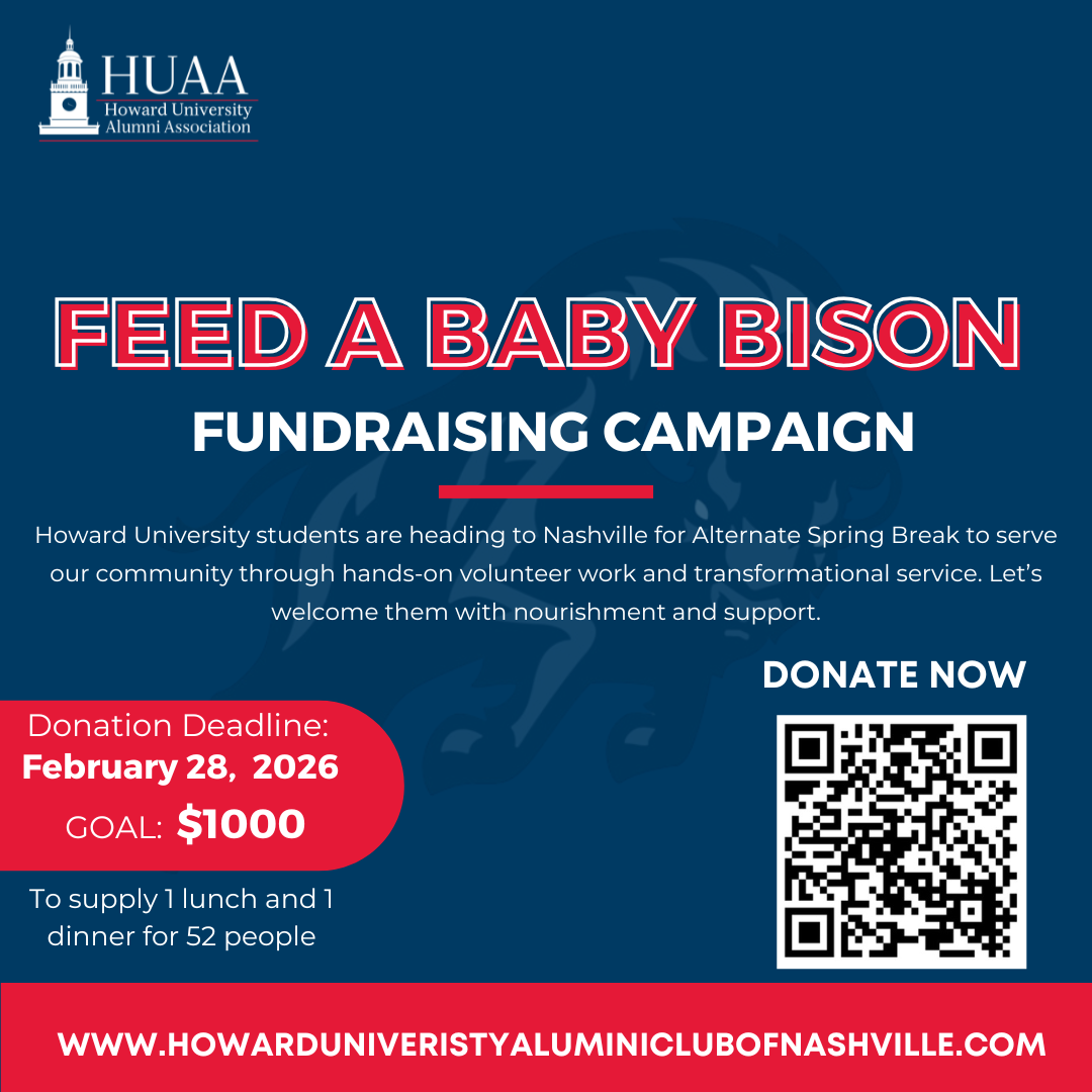We are collecting donations now through February 28th to support Howard University students participating in Alternative Spring Break in Nashville. Your contribution helps fund meals, supplies, and essential resources for students as they serve communities in need across the country.