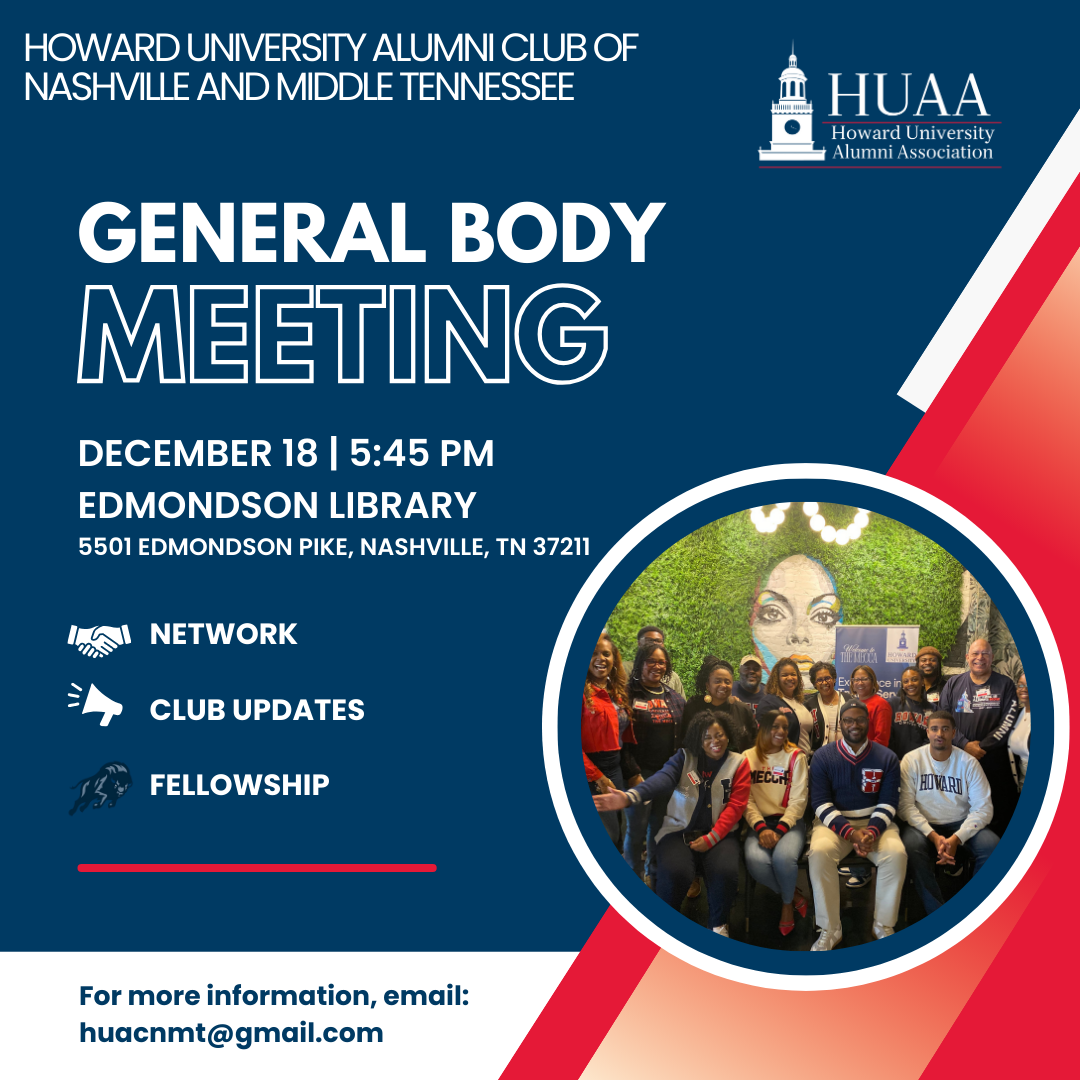 Join fellow Howard University graduates for upcoming gatherings and networking events in Nashville and Middle Tennessee to reconnect and strengthen our alumni community.